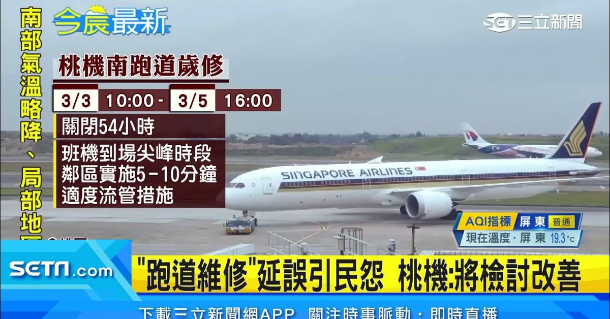 桃園機場南跑道3日起進行年度維修,導致大規模班機延誤,近20架飛機排隊降落,許多人苦等超過一小時,引起旅客不滿,而目前航空公司也表示,旅客可以上網查詢班機最新動態,避免白跑一趟。成為這個頻道的會員並獲得福利:https://www.youtube.com/channel桃園機場南跑道3日起進行年度維修,導致大規模班機延誤,近20架飛機排隊降落,許多人苦等超過一小時,引起旅客不滿,而目前航空公司也表示,旅客可以上網查詢班機最新動態,避免白跑一趟。成為這個頻道的會員並獲得福利:https://www.youtube.com/channel桃園機場南跑道3日起進行年度維修,導致大規模班機延誤,近20架飛機排隊降落,許多人苦等超過一小時,引起旅客不滿,而目前航空公司也表示,旅客可以上網查詢班機最新動態,避免白跑一趟。成為這個頻道的會員並獲得福利:https://www.youtube.com/channel